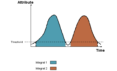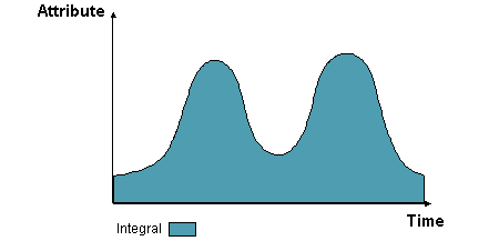 Total integral over simulation. i.e. areas under Attribute vs Time graph