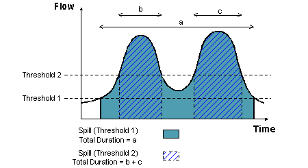 Click on the image below to display an example for the sum of duration exceedances of spills over threshold that occur during the simulation. Example