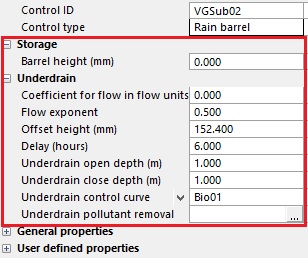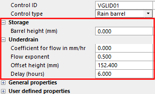 SUDS properties for a rain barrel | LID properties for a rain barrel |