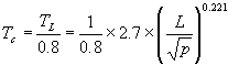 For catchment areas below 2km2, t2 is assumed to be zero, t1 is calculated as: