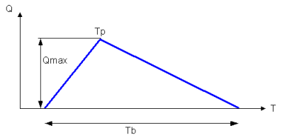 For unit hydrograph definitions except Rational, if Tc is defined or calculated, Tp and Tb are calculated as follows:
