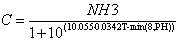 where: NH3 is the total ammonia concentration T is the temperature in Celsius PH is the pH level |