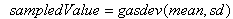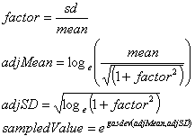 The random sampling of log normal distributions uses gasdev() with the following modifications/transformations of the mean and standard deviation: