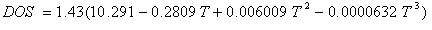 where: U is the stream velocity (m/s) d is the depth (m) C is the Aeration constant vc is the velocity exponent dc is the depth exponent C, vc and dc are set in the UPM River Data dialog - Downstream tab. DOS is given by: