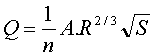 where: Q is the flow generated from the log normal distribution (m/s) n is the manning roughness A is the cross-sectional area (m2) R is the hydraulic radius (m) (cross-sectional area of flow divided by perimeter of flow in contact) S is the channel slope (m/m) |