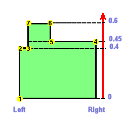 - The next point up is Point 3. Its height is the same as Point 2's so we are going to give it a height of 0.666700 (values must differ by at least 0.000010). Left = 0.1(= 0.05/0.5) and Right = 1 (far right).