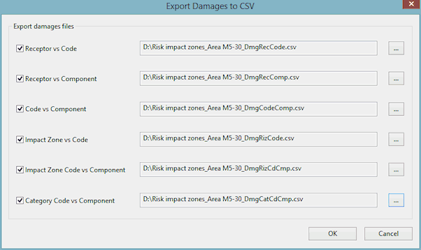 Impact Zone vs Code | If checked, exports damage values per risk impact zone category tabulated by risk impact zone ID against damage function code. |