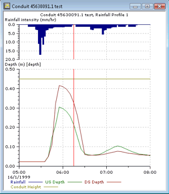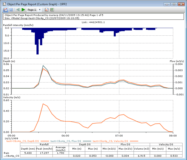 InfoWorks ICM displays a table at the bottom of the page giving statistics, including minimum and maximum values.