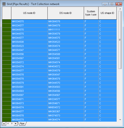 Each row on the grid shows the details of one object of the network that satisfies the SQL query conditions. The columns that are displayed are those selected in the Grid tab of the SQL dialog.