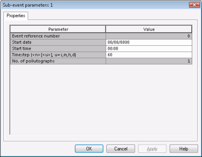 The Data Type Flag field for attached pollutants can be ignored. The other Pollutograph Event properties are described in the Common Properties table at the top of the page.