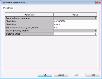 The Wetness index is read from the first sub-event throughout the simulation regardless of the setting of the Read Sub-Event Parameters check-box. |