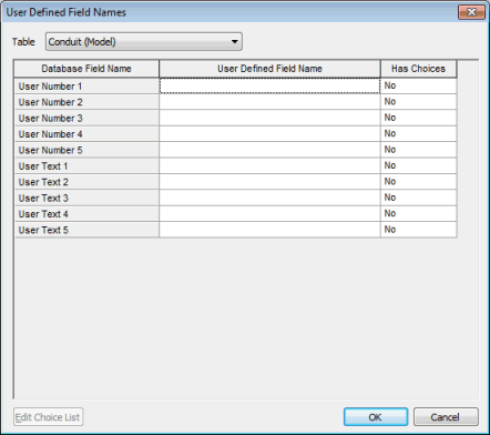 For Asset networks it is also possible to edit the choice lists for User Text fields via this dialog. Click a user text row and click the Edit Choice List button to display the Standards and Choice Lists Dialog. See the InfoAsset Manager help for details.