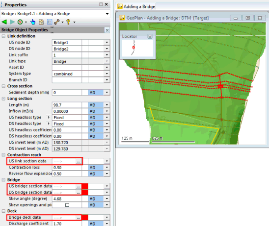 - Ensure that the Adding a bridge network and the DTM ground model are both open on the GeoPlan. Alternatively, if you have not completed the previous steps, please use the provided Adding a bridge- step 2 completed network as a starting point.
