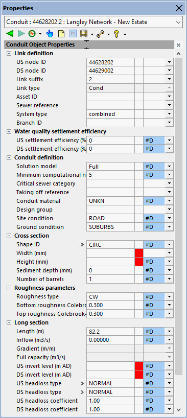 7. Click OK and the conduit property sheet is displayed in an object properties window.