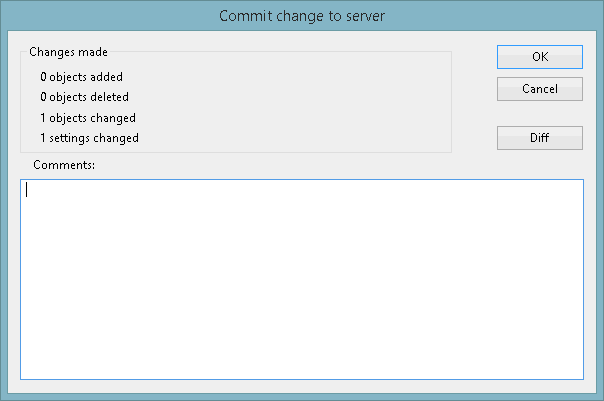 - Enter a comment, such as 'Changed pump switch on level from 2.7 to 8.9' and click OK.