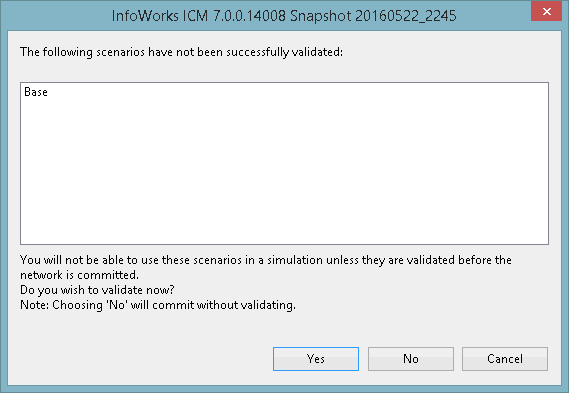 If the network contains any scenarios, then a message is displayed asking you to validate the network.