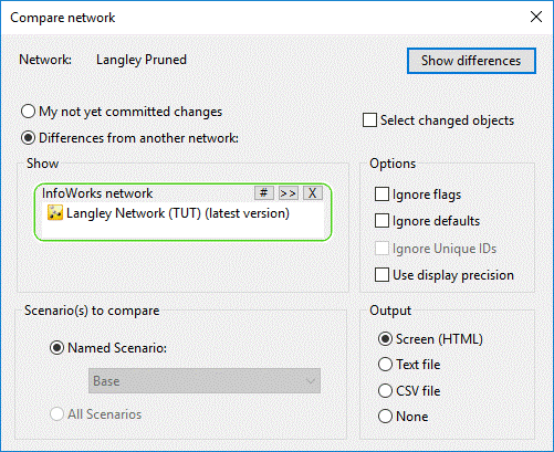 - Check the Differences from another network box to compare two different version controlled items. The Show pane is now enabled.