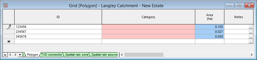 The properties for each type of polygon are contained in separate tabs at the bottom of the grid.