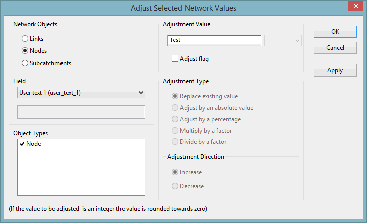 Adjust Selected Network Values dialog is displayed.