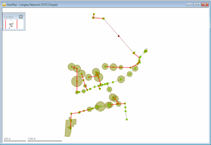 - Click Run to run the query, and the pipes which match the '< 250 mm' query are displayed in the GeoPlan.
