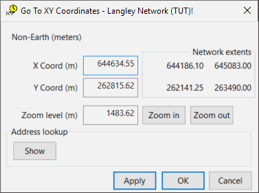 - If you want to find the address for the coordinates, click the Show button to display the Address lookup options. See Find and Zoom Using XY Coordinates for further information about finding an address.