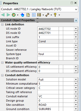 The property sheet for the selected object will be displayed. For example: