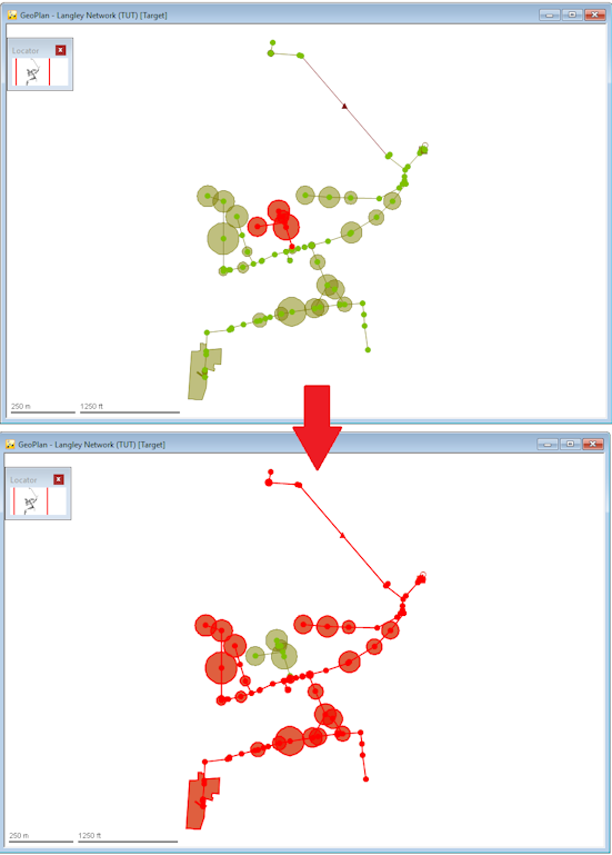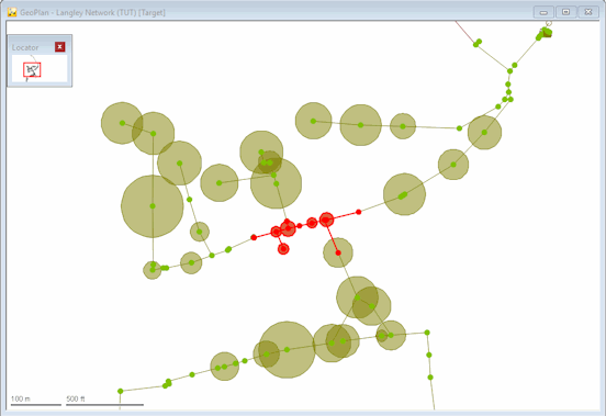 (Properties) button on the GeoPlan Tools toolbar and then on an object in the network. As you move around the network, labels that identify the objects will pop up.