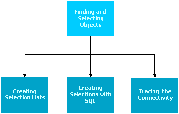 This topic outlines the basic ways to find and select objects in InfoWorks ICM. Other methods that can also be used for finding and selecting objects in a network are shown in the following flowchart.