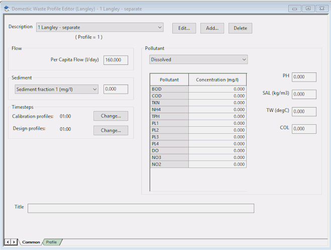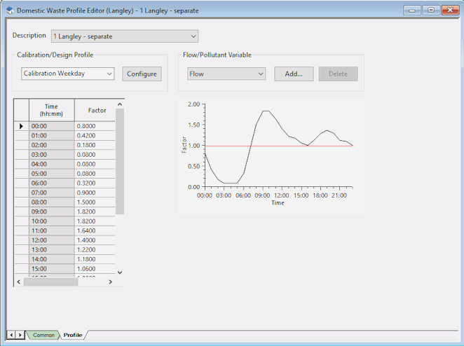 - Click the Profile tab (at the bottom of the window). This tab shows the way in which the waste water flow varies over the course of a day.