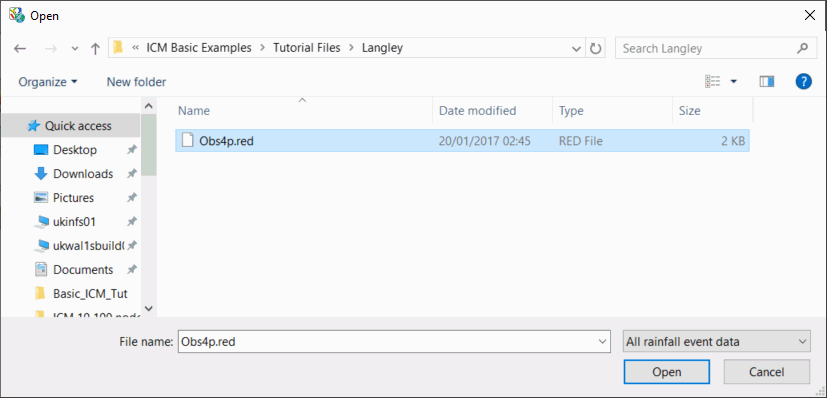 - Click Open. The rainfall event is added to the 'Rainfall Group'.