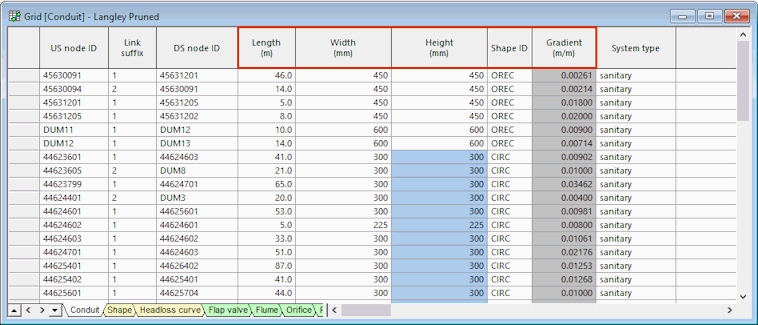 - Re-organise the columns so that you can see the Length, Shape ID, Width, Height and Gradient.