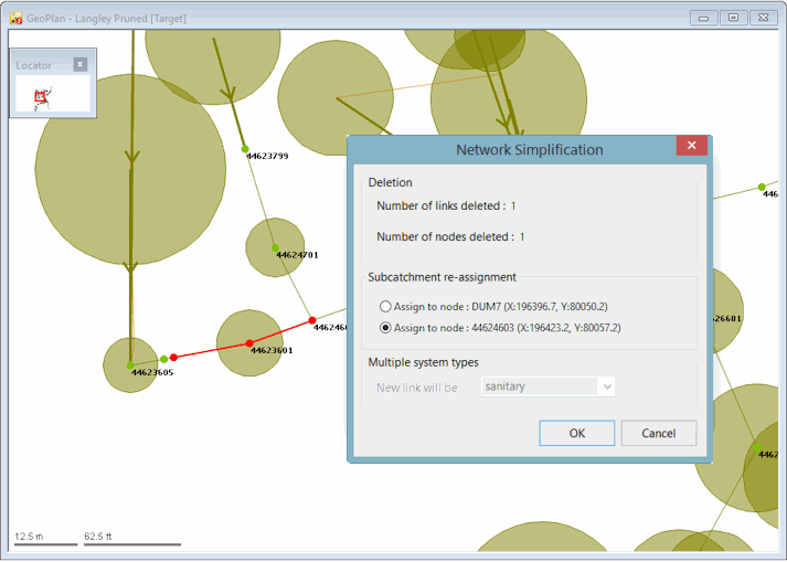 If there are nodes to be deleted that have subcatchments draining to them, then you can choose to move them to the nearest upstream or downstream node.