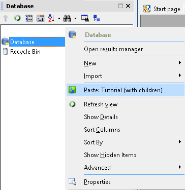 Right-click the 'Tutorial' model group and select Paste: Tutorial (with children) from the popup menu.