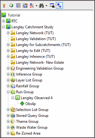(Expand) button to the left of the 'Run Group' and you will see that it now contains the 'Langley Observed 4' run, which in turn contains the 'Obs4p' simulation. The simulation icon is green, indicating that the simulation was completed successfully. This does not mean, however, that the model run has not suffered from any instabilities.