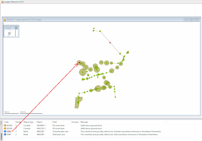 Click once the error or warning to highlight the corresponding network object on the GeoPlan.