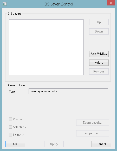 - The GIS Layer Control dialog is displayed. The appearance of the dialog and the action to be taken depends on the map control you are using.