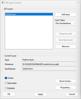 ArcGIS Map (Tech Preview) GIS Layer Control Dialog