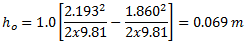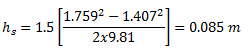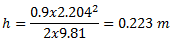 Therefore from equation 10, hT = 0.213 + 0.085 = 0.298 m.