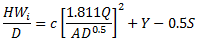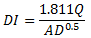 DI = discharge intensity Q = design discharge (m3/s) A = culvert area (m2) D = culvert height (m) |