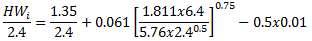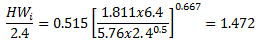 Here only the inlet calculations are shown, because as mentioned previously, the headloss in the culvert itself and the outlet are calculated by the same method as the un-submerged condition. This example uses the same culvert arrangement as shown in Figure 2, except the height fo the culvert is reduced from 2.4 to 1.0 m. Therefore from equation 2: