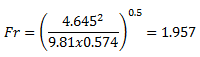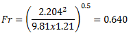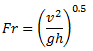 Fr = Froude number v = Velocity g = 9.81 m/s2 h = Depth |