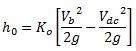 Ko = outlet headloss coefficient, usually 1.0 (CIRIA Ref 1, pg 141) Vb = velocity in the culvert Vdc = velocity in channel immediately downstream of the culvert