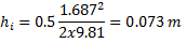 hi = headloss across inlet Ki = constant taken from CIRIA (Ref 1) (Table D1, pg 151) Vb = velocity in the culvert |