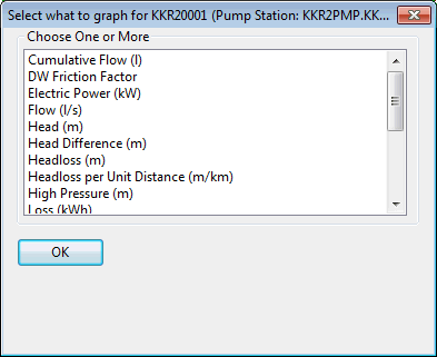 The dialog offers a choice of time varying data to graph. The list will be appropriate to the type of network object selected.