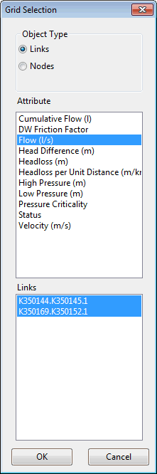 The Links and Nodes radio buttons allow the choice of which type of object is to be included in the grid. |