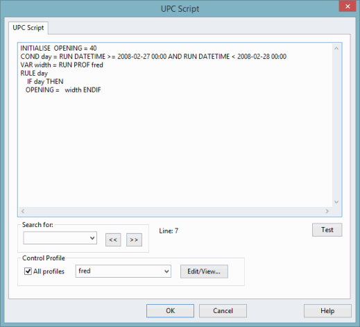 The UPC script editor is used to view and edit UPC scripts defining logical controls for valve and pump station objects.