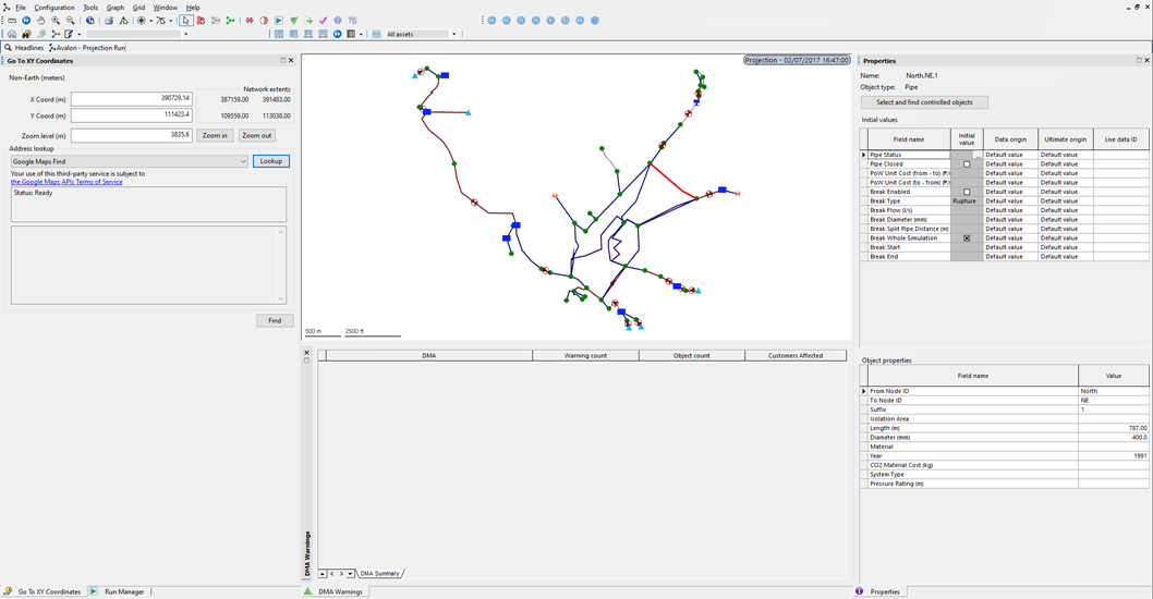 The Map view displays a detailed map of the network belonging to an individual baseline. All network objects are displayed in the map view.