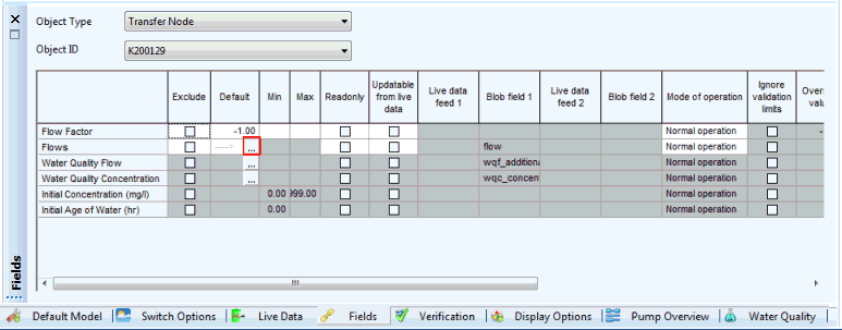 Scaling is performed by linking a transfer node to a telemetry feed where the user specifies whether to use the flow for the last week, month, year, etc., or the forecast flow from an external database. The flow values are obtained for the specified time (x days ago, x weeks ago, x days in the past or future, x weeks in the past or future). The transfer node is linked via the Flows field.