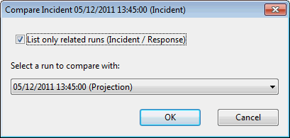 Enabled when the base run has got related runs (incident or response runs) with associated warning results. When selected, this option restricts the Select a run to compare with drop-down list to incident or response runs that are related to the base run. |