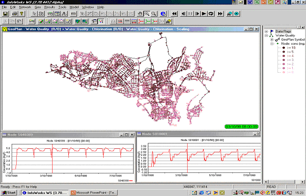 A well-calibrated model with accurate demand allocation can be used to assess system chlorination requirements. The water provider can assess the concentration necessary at the water treatment works / source and determine the requirement for any additional chlorine boosters within the system.